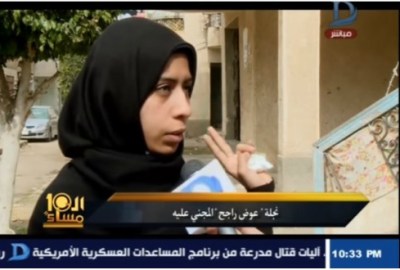 تابعت نجلة المجني عليه أن والدها خرج ليعطي بطاقته الشخصية للضابط؛ فقامت المدرسة بصفعه على وجه فسقط ميتًا على الأرض.
