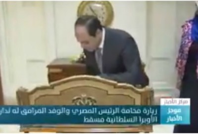 أذاع التلفزيون العماني مقتطفات من زيارة الرئيس عبد الفتاح السيسي اليوم الاثنين لجامع السلطان قابوس الأكبر، ودار الأوبرا العمانية، برفقة وفدٍ من الحكومة العمانية.