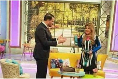 اقتحم الفنان إستديو البرنامج على الهواء وقدم “تورتة” إلى الفنانة احتفالًا معها بانطلاق أولى حلقات البرنامج؛ وقال “كامل” موجهًا حديثه لزوجته “مينفعش يكون أول يوم ليكي في تليفزيون مصر تليفزيون بلدنا من غير ما أكون معاكي؛ الف مبروك ليكي ولكل القائمين علي برنامج الست هانم، ونفسنا التليفزيون المصري يكون أكبر تلفزيون في العالم”.