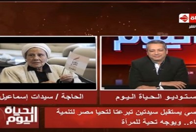 وكان الرئيس عبد الفتاح السيسى استقبل اليوم كل من سيدات محمد إسماعيل عامر، وفتحية محمد إسماعيل السيد، واللتين قامتا بالتبرع لصندوق تحيا مصر “حساب تنمية سيناء”.
