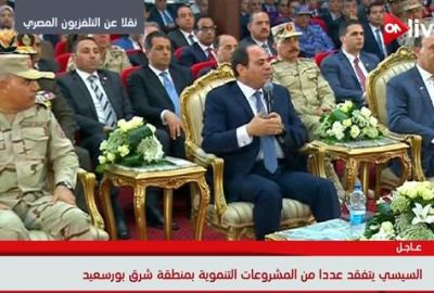 أضاف السيسي خلال متابعته أعمال تطوير ميناء شرق بورسعيد والمنطقة الصناعية، اليوم السبت، أن الدولة تُضيف عليه أموالًا لكن عندما توفر التمويل من أموال المصريين، بدأت أعمال التطوير في المشاريع الثلاث الضخمة مرة واحدة، لافتًا إلى أن البداية كانت بحفر قناة السويس الجديدة.