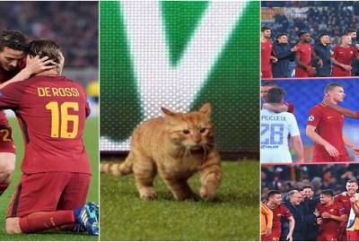 بعدها وفي خضم الفرحة الهيستيرية والتاريخية لفريق روما استغلت الصفحة الحدث لإحداث المزيد والمزيد من الإثارة والحركة على الصفحة مع جمهورها العربي فقامت بنشر هذه الصورة لقائد الفريق دي روسّي بالتعليق الذي كان بالأساس لمقدم البرامج والمعلق الشهير مدحت شلبي حين أطلقه بعد تسديد عبد السعيد لركلة جزاء في مرمى الزمالك