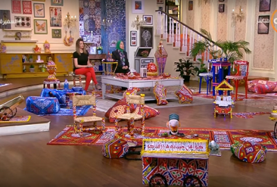 2 – يتغير شكل الديكور في بعض البرامج ليغلب شكل القصاصات الرمضانية الملونة على بعض ديكورات البرامج استعدادا لاستقبال الشهر الكريم.