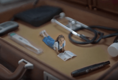 لكن بمشاهدة الإعلان يتضح في اللقطة الواسعة للطفل بأن الكتاب الذي يضع الطفل عليه قدمه ما هو إلا مرجع مكتوب عليه حروف باللغة الإنجليزية.