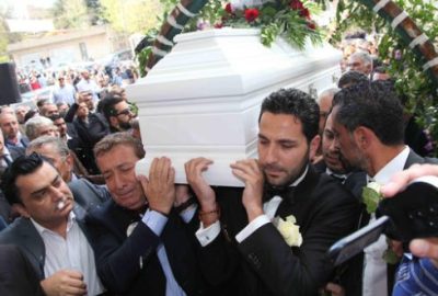 بحضور رسمي وشعبي وفني وإعلامي كبير، ودع لبنان الفنان عصام بريدي في كنيسة مار جرجس فتزينت البلدة بالورود البيضاء وتم توزيع ضيافة حفل الزفاف بحضور فرق الزفة وعرض لأغنيات الراحل عبر مكبرات الصوت، فى جنازة مشابه لجنازة الراحلة صباح.