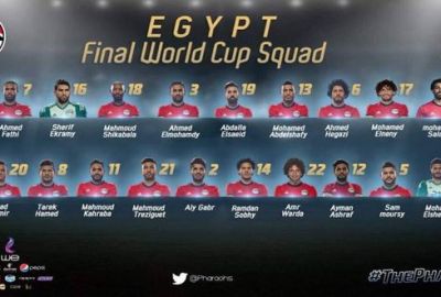 أعلن منتخب مصر عبر حسابه الرسمي على موقع التواصل الاجتماعي “تويتر”، عن أرقام قمصان اللاعبين خلال مونديال روسيا 2018، الذي سينطلق في الرابع عشر من شهر يونيو الحالي وحتى 15 يوليو المقبل، وذلك بعدما استقر المدرب الأرجنتيني هيكتور كوبر على القائمة النهائية للفراعنة.