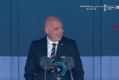 انفانتينو رئيس الاتحاد الدولي #الفيفا يرحب بالمنتخبات العربية :