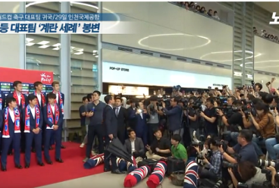استقبل مشجعو المنتخب الكوري، فريقهم بإلقاء البيض والوسائد عليهم، عقب عودتهم من روسيا، وفشلهم في التأهل للدور الثاني لكأس العالم 2018.