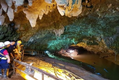 يذكر أن الفريق المدرسي، كان قد علق داخل كهف مغطى المياه في شمال تايلاند لمدة أسبوعين بسبب مياه الأمطار التي تسببت في فيضانات موسمية أدت لإغراق ممرات الكهف.