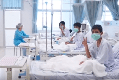 استقر أطفال الكهف الـ12 ومدربهم داخل أحد المستشفيات التايلاندية لتوفير الرعاية الصحية لهم، بعد معاناة استمرت لمدة 17 يومًا كاملة داخل الكهف الجبلي الموجود بأحد الغابات التايلاندية.