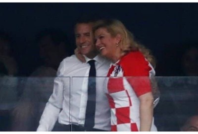 صافحت رئيسة كرواتيا، الرئيس الروسى فلاديمير بوتين، ونظيره الفرنسى إيمانويل ماكرون، وعانقتهما فى المدرجات، عقب وصولها إلى ملعب “لوجنيكى”، وبعد انتهاء المباراة عانقت الرئيس الفرنسي وقبّلته مهنئةً إياه على فوز منتخب بلاده.