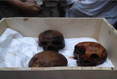 قال الدكتور مصطفى وزيري، أمين عام المجلس الأعلى للآثار، إن أحد الجماجم، المكتشفة في تابوت الإسكندرية ، كان بها شق، أشبه بضربة السيف، ومعالم الجمجمة حادة، تُشير إلى أنه شخصية عسكرية.