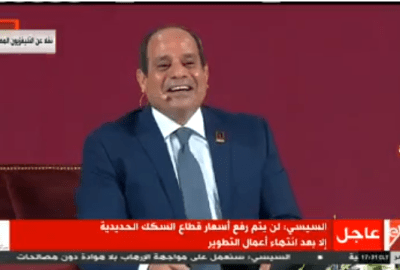 كذلك علق الرئيس على السكة الحديد قائلا أننا سننتهي من تطوير السكك الحديدية خلال عاميين، مشيرا إلى أنه لن يتم رفع أسعار السكة الحديد إلا بعد تطويرها بالكامل.