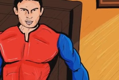 ثم ينهض ليرتدي زي أحمر شبيه بزي شخصية “سبايدرمان” ثم يلتقي زميله في الفريق أحمد عيد عبد الملك، ليساعده في جمع اللاعبين والذهاب إلى النادي في “توكتوك”.