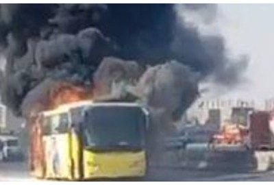 كان مسؤول غرفة الحماية المدنية بالجيزة قد تلقى إخطارا من شرطة النجدة بنشوب حريق بحافلة ركاب أعلى محور صفط اللبن بالقرب من منزل جامعة القاهرة.
