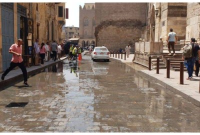 قال الدكتور محمد عبد العزيز، مدير عام مشروع تطوير القاهرة التاريخية، إن الصور المتداولة على مواقع التواصل الاجتماعي، والتي يظهر فيها شارع المعز السياحى الشهير بمنطقة الجمالية، غارقًا بسبب طفح في بالوعات الصرف الموجودة في الشارع حقيقية.
