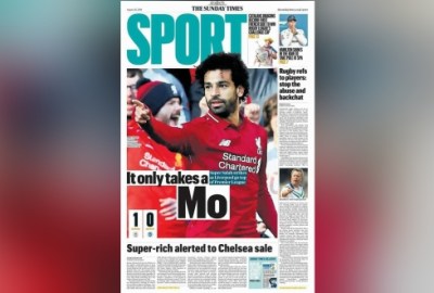 تصدرت صورة محمد صلاح نجم منتخب مصر ونادي ليفربول الإنجليزي؛ صحيفة “التايمز” الإنجليزية صباح اليوم الأحد، بعد تألقه خلال مباراة فريقه أمام نادي برايتون أمس.