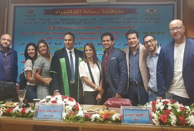 كان موضوع الرسالة التي ناقشها “بدوي”، عصر اليوم الأحد، في مدرج 3 بكلية الإعلام، عن “دور الإنترنت والفضائيات الإخبارية العربية في دعم المشاركة السياسية بين الشباب العربي”.