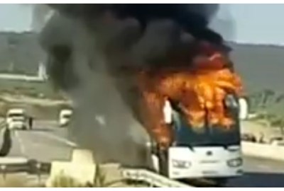 اشتعلت النيران في حافلة فريق وفاق سطيف الجزائري، بعد عودة بعثته من المغرب، صباح اليوم..