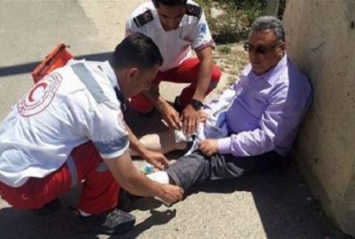 أصيب عبد الناصر النجار، نقيب الصحفيين الفلسطينيين، ومحمد اللحام، عضو الهيئة العامة للنقابة، ظهر اليوم السبت، بجروح في قدميهما جراء قنابل صوت، أطلقها جنود الاحتلال الإسرائيلي على مسيرة سليمة للصحفيين في بيت لحم، إحياء لليوم العالمي لحرية الصحافة.