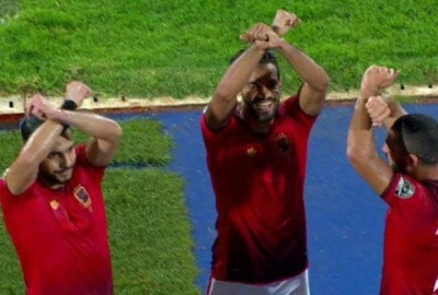 وأضاف:” هذه الإشارة تضامناً مع جمهور الأهلي بأكمله وليس الجمهور المحبوس أردنا أن نؤكد أننا إيد واحدة مع الجمهور الأهلاوي”.