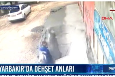 تداول رواد مواقع التواصل الاجتماعي فيديو يظهر انهيارًا أرضيًا في أحد أحياء مدينة ديار بكر جنوبي تركيا ، خلال مرور سيدتين في أحد الشوارع.