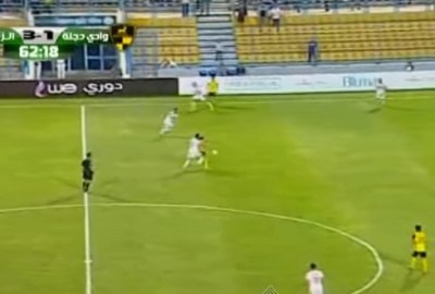 في الدقيقة 43 قبل الهدف سقط خالد رضا مدافع وادي دجلة أرضاً وكاسونجو ليفترشا الأرض قبل أن تصل الكرة إلى إبراهيم حسن الذي سدد بقوة للشباك.