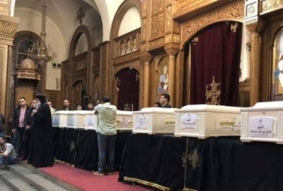 وكانت الكنيسة الانجيلية في قرية عزبة رويدا بمحافظة المنيا قد شهدت في الساعات الأولى من صباح اليوم تشييع جثمان الشهيد أسعد فاروق لبيب، بحضور محافظ المنيا اللواء قاسم حسين والقيادات الشعبية والتنفيذية والسياسية والدينية بالمحافظة.