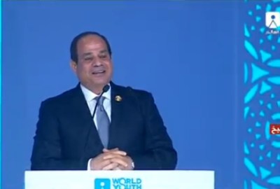 وجه الرئيس عبد الفتاح السيسي، رسالة إلى الناشطة الأيزيدية العراقية نادية مراد، الفائزة بجائزة نوبل للسلام، خلال حفل افتتاح النسخة الثانية من منتدى شباب العالم، اليوم السبت، في مدينة شرم الشيخ.