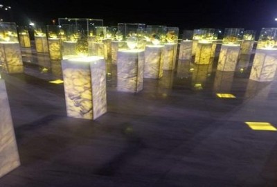 كما أشارت إلى أن اختلاف أشكال الرخام المستخدم يعكس طبيعة اختلاف الثقافات والشعوب، ويقل تدريجيا هذا الاختلاف في نوعية الرخام حتى يصل لنوع واحد متساوي يعكس المساواة في رحلة الإنسانية وطريق النور.