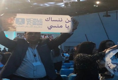 "لن ننساك يا منسى".. لافتة تزين حفل ختام منتدى شباب العالم ٢٠١٨ pic.twitter.com/eCIxlHQyqT