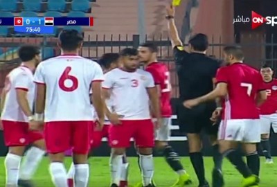 لحظة طرد طاهر محمد طاهر بعد اشتباكه مع لاعب تونس