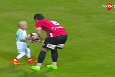الطفل “مصطفى” نزل قبل المباراة إلى أرض الملعب رفقة اللاعبين، مرتديًا قميص الاتحاد رقم 21، وتم إعطاءه الكرة، ليسجل هدفًا في مرمى محمد بسام، حارس طلائع الجيش، وسط احتفال من جماهير الاتحاد ولاعبي الفريقين.