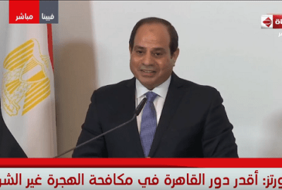 قال السيسي خلال كلمته، إن مصر كان لها التزام أخلاقي، تجاه اللاجئين، ولم تقم مصر بالضغط عليهم أو ابتزازهم بشأنهم، بل تعاونا معهم كمواطنين، وأعطيناهم فرصة للعمل والحياة في الدولة.