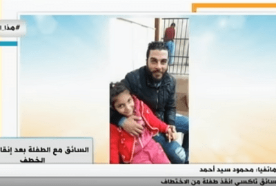 أنقذ شاب يُدعي محمود سيد أحمد مرسي سلامة، ويعمل سائق تاكسي بمحافظة الاسماعلية ، الطفلة “حلا” من حادثة اختطاف أثناء تأديه عمله.