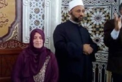 لقن الشيخ عبد الباسط عثمان خطيب مسجد الميناء الكبير بالغردقة، الشهادتين لـ سائحة ألمانية الجنسية، اليوم، الجمعة، وسط عدد كبير من المصلين.