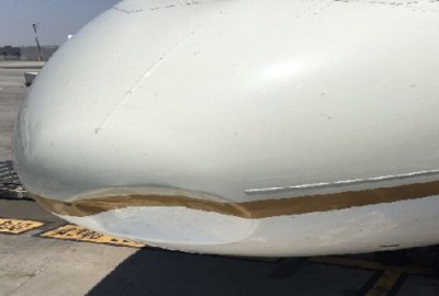 تعرضت طائرة إماراتية للاصطدام مع إحدى السيارات في مهبط مطار القاهرة الدولي، اليوم السبت، وذلك أثناء توجه الطائرة لممر الإقلاع، مما تسبب في تأخر إقلاع الرحلة، بسبب تلف أحد إطارات الطائرة نتيجة لواقعة التصادم، ولم ينتج عن التصادم أي إصابات.