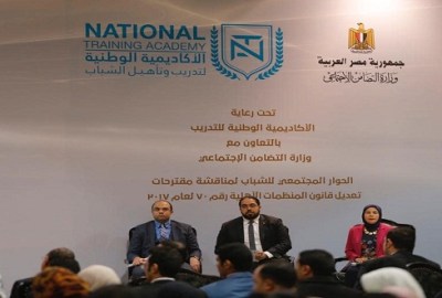 نظمت الأكاديمية الوطنية لتدريب وتأهيل الشباب، اليوم الأربعاء، بالتعاون مع وزارة التضامن الاجتماعي، جلسة حوار شبابية حول مناقشة تعديل قانون 70 الخاص بتنظيم عمل المنظمات الأهلية.