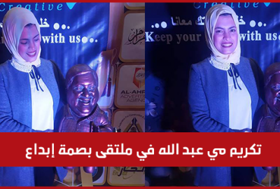 شهد حفل وملتقى بصمة إبداع تكريم مي عبد الله “نحاتة المنيا”، على مجمل أعمالها، وشاركت في الحفل بتمثال للفنان علاء ولي الدين، وذلك بالتزامن مع إقامة تكريم خاص للفنان الراحل في ذكرى وفاته.