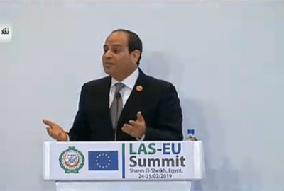 أضاف “السيسي” خلال ختام القمة العربية الأوروبية، إن مدينة شرم الشيخ المقام بها المؤتمر، وأشاد بها كافة الحضور، من الممكن أن تتحول إلى مدينة أشباح، بعمل إرهابي واحد، مؤكدًا أن ذلك لا يعني إجراء تجاوزات في حقوق الإنسان.
