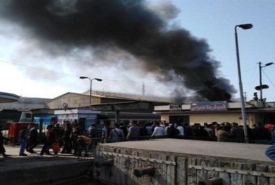 قال مصدر أمني إن الجرار كان خارجا من ورشة الصيانة ودخل مسرعا في أحد مباني بالسكك الحديد؛ ما أدى إلى اشتعال القطار.
