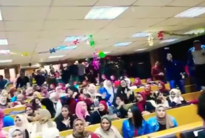 كان تداول بعض مستخدمي “السوشيال ميديا”، مقطع فيديو من داخل إحدى مدرجات الدراسة بجامعة المنصورة، يظهر فيه رقص بعض الطلاب على أغاني “حمو بيكا”.