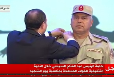 وكشف الرئيس إنه قرر ترقية اللواء كامل الوزير قبل تعيينه رسميا وزيرا للنقل.