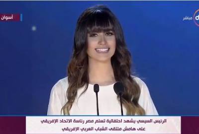 قدمت الإعلامية نانسي نور، مساء اليوم، فعاليات الاحتفالية الخاصة بمناسبة ترأس مصر للاتحاد الإفريقي، بحضور الرئيس عبد الفتاح السيسي، وذلك على هامش فعالیات ملتقى الشباب العربي والإفریقي في مدینة أسوان. نانسي نور تقدم احتفالية الاتحاد الإفريقي