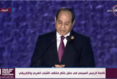 تابع “السيسي” خلال الجلسة الختامية لملتقى الشباب العربي والإفريقي، إنه سيتم إطلاق نفس المبادرة للمقيمين في مصر من جنسيات أخرى، مُعلقًا: “مبادرة للضيوف المقيمين في مصر وليس اللاجئين”.