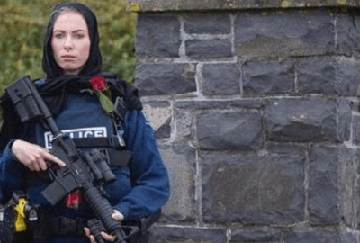 وقررت ضابطة الشرطة ميشيل إيفانز ارتداء الحجاب، وتعليق وردة حمراء على سترتها المضادة للرصاص كنوع من التضامن الرمزي الذي قوبل بالامتنان في جميع أنحاء العالم، بحسب ما ذكرت صحيفة “ديلي ميل” البريطانية.