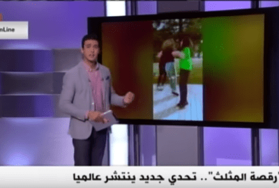 أوضح “حداد” في برنامجه “أونلاين”، المذاع عبر قناة eXtra News، اليوم الأحد، أن التحدي عبارة عن 3 أشخاص يتحركون بشكل متناسق، وأي خلل في هذه الحركة يؤدي لسقوط الجميع، لافتًا إلى أن أوائل الفيديوهات التي ظهرت في هذا التحدي كان لفتاة نشرت فيديو لها مع صديقتيها أثناء التحدي، معلقًا: “الموضوع يبان إنه سهل جدا لكن عند التجربة هتلاقيه غير كده”.