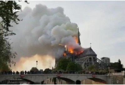 وذكر شاهد من “رويترز” أنه أمكن رؤية الدخان وهو يتصاعد من قمة الكاتدرائية التي ترجع للعصور الوسطى كما انتشرت ألسنة اللهب بجانب برجي الكاتدرائية.