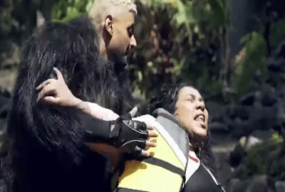 تظهر بعد ذلك “غوريلا مُفترسة” من بين الأشجار والأدغال، بصورة غير متوقعة أﻣﺎم الضيف، بعد ما يظن أنه قد نجا، ما يُزيد من فزعه وخوفه.