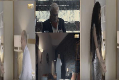 يظهر في المشهد الأول شخصان يتحدثان عبر الهاتف المحمول، إحداهما يتحدث عبر خاصية “الفيديو كول”، والآخر يضع الهاتف على أذنه.